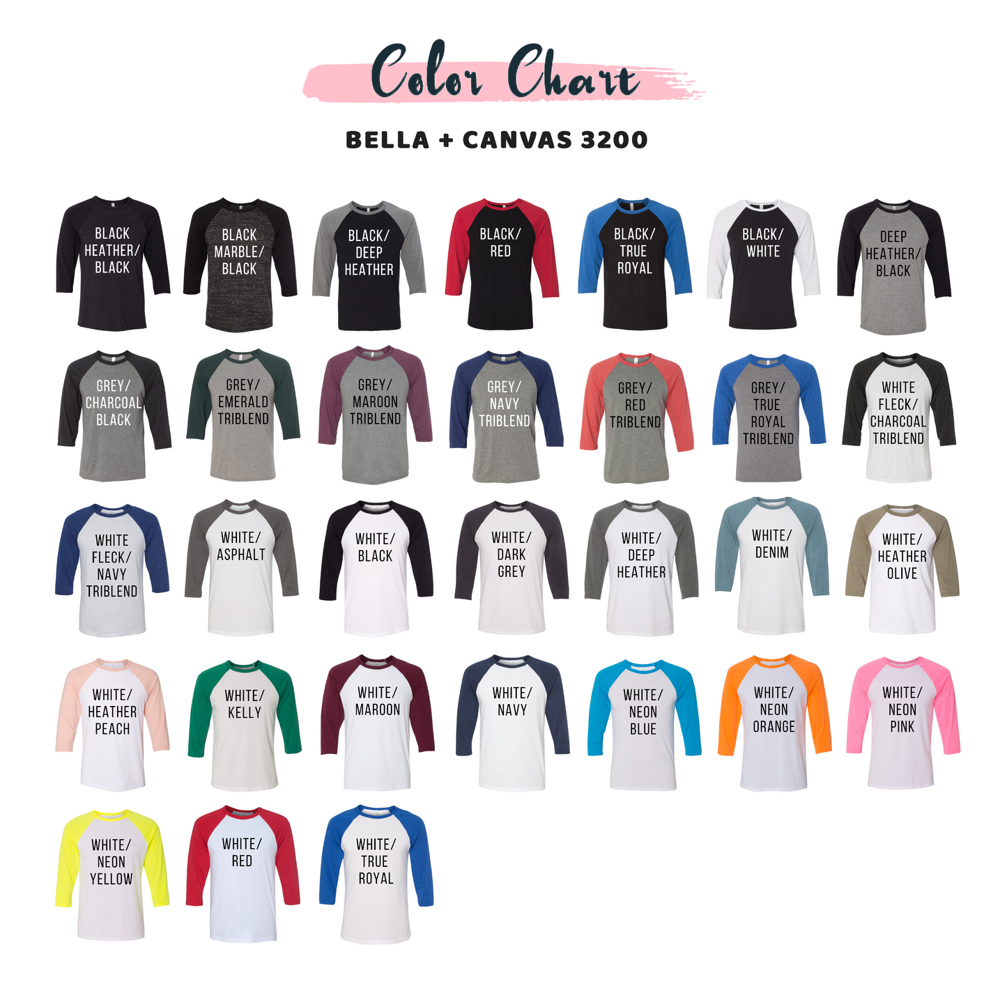 Baseball Tees are also Bella Canvas brand and are 52/48 Airlume combed and ring-spun cotton/polyester.